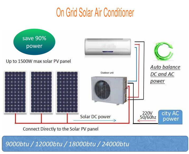 On Grid DC inverter solar air conditioner takes the most leading technology in the world market.