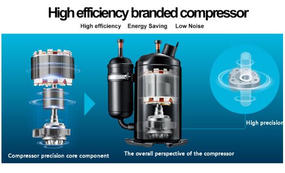 When the power on, the compressor start working, it compress the refrigerant from low pressure to high pressure, low temperature to high temperature, then discharge to heat exchange of the solar collector,